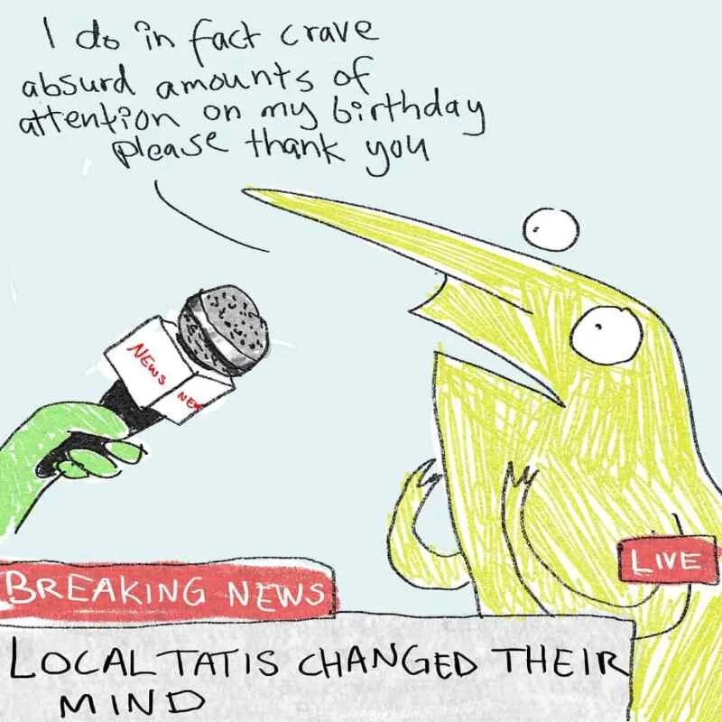 I stopped drawing Toddy, but my need to push my jokes on people never waned, so I picked it up again recently, coming up with Tatis by chance.